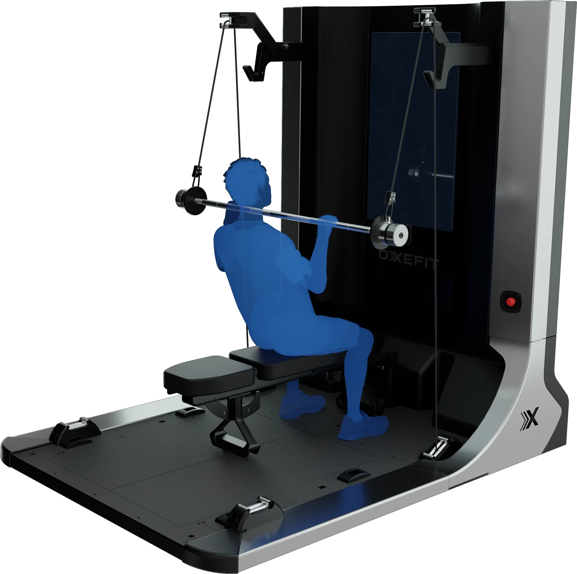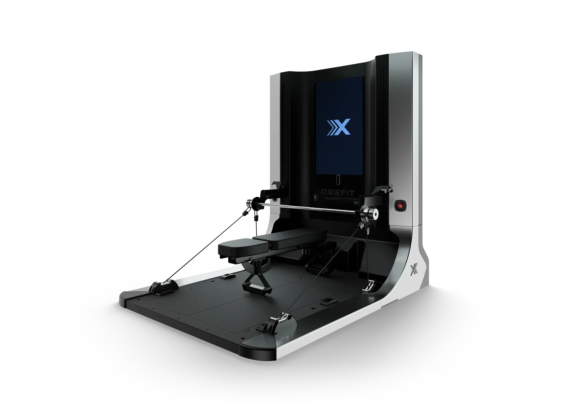 The OxeFit XP1 redefines smart training through unique digital tension technology, delivering resistance that is smooth, dynamic, precise, and persistently adaptive to the user's movement. Its personalized calibration system combines body data mapping, motion tracking, integrated video, and 3D avatar monitoring, enabling hyper-accurate performance guidance. The XP1 features advanced assessment capabilities, measuring movement quality, jump mechanics, strength, endurance, and balance, making it ideal for both high-performance development and corrective training. With up to 400 lbs of digital resistance, it offers exceptional efficiency for strength building while maintaining maximum safety through Auto-Sense technology, including a virtual spotter and automatic movement risk prevention. Integrated force plates allow targeted balance training and asymmetry detection, while comprehensive analytics track power output, velocity, bar path, force, and load in real time. Engineered for precision, safety, and progressive performance, the XP1 elevates every session into a data-enhanced training experience.