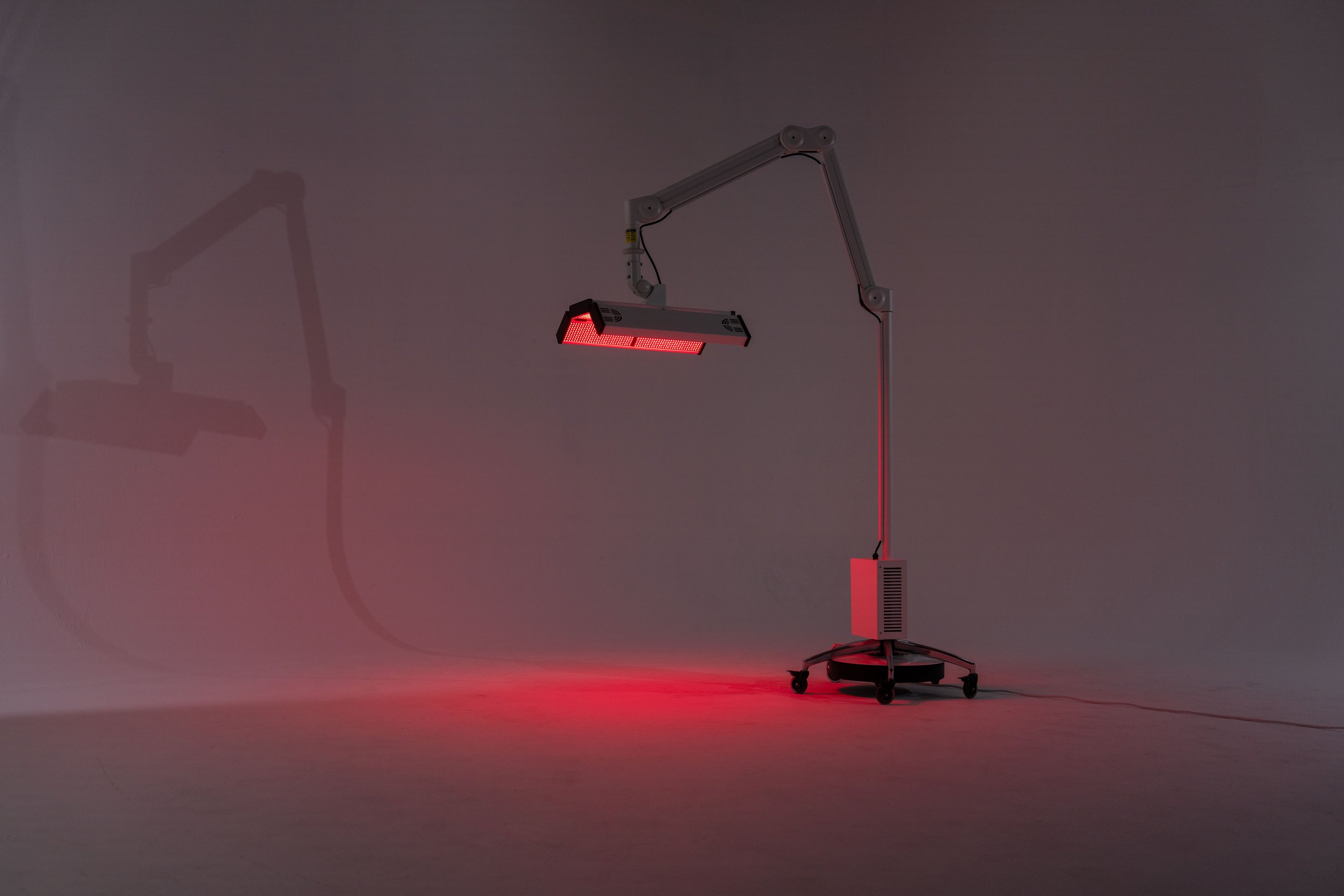 The ApolloARC has been engineered to deliver exceptional full-body therapeutic performance through one of the industry's most powerful red light systems. Designed for seamless integration into high-end wellness and recovery spaces, it fits easily through any standard 32-inch opening and plugs into a standard three-prong outlet, simplifying installation without sacrificing sophistication. Its panel measures 20 inches in length by 24 inches in width and only 2 inches in depth, mounted on an adjustable arm extending up to 60 inches in length and 66 inches in height, with a total machine weight of 141 pounds. Operating with a 110 VAC power input and 24 VDC output at 34 amps, the ApolloARC harnesses 2,324 medical-grade diodes—2,016 red and 308 infrared—delivering wavelength precision within the optimal therapeutic range of red light at 635nm and infrared at 805nm. With an impressive irradiance of 150 mW/cm² (measured from the polycarbonate surface, ±10 mW/cm²), it outperforms leading systems on the market, whose average output hovers around 51 mW/cm². This exceptional power density allows for deeper tissue penetration, accelerated cellular regeneration, and more effective recovery sessions, positioning the ApolloARC as one of the most advanced and efficient red light solutions available today.